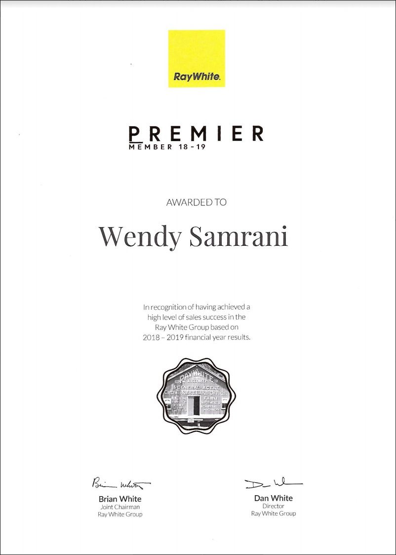 Congratulations to Ray White Caringbah’s Principal, Wendy Samrani, for achieving the title of Premier Member 2018-2019, two years in a row.