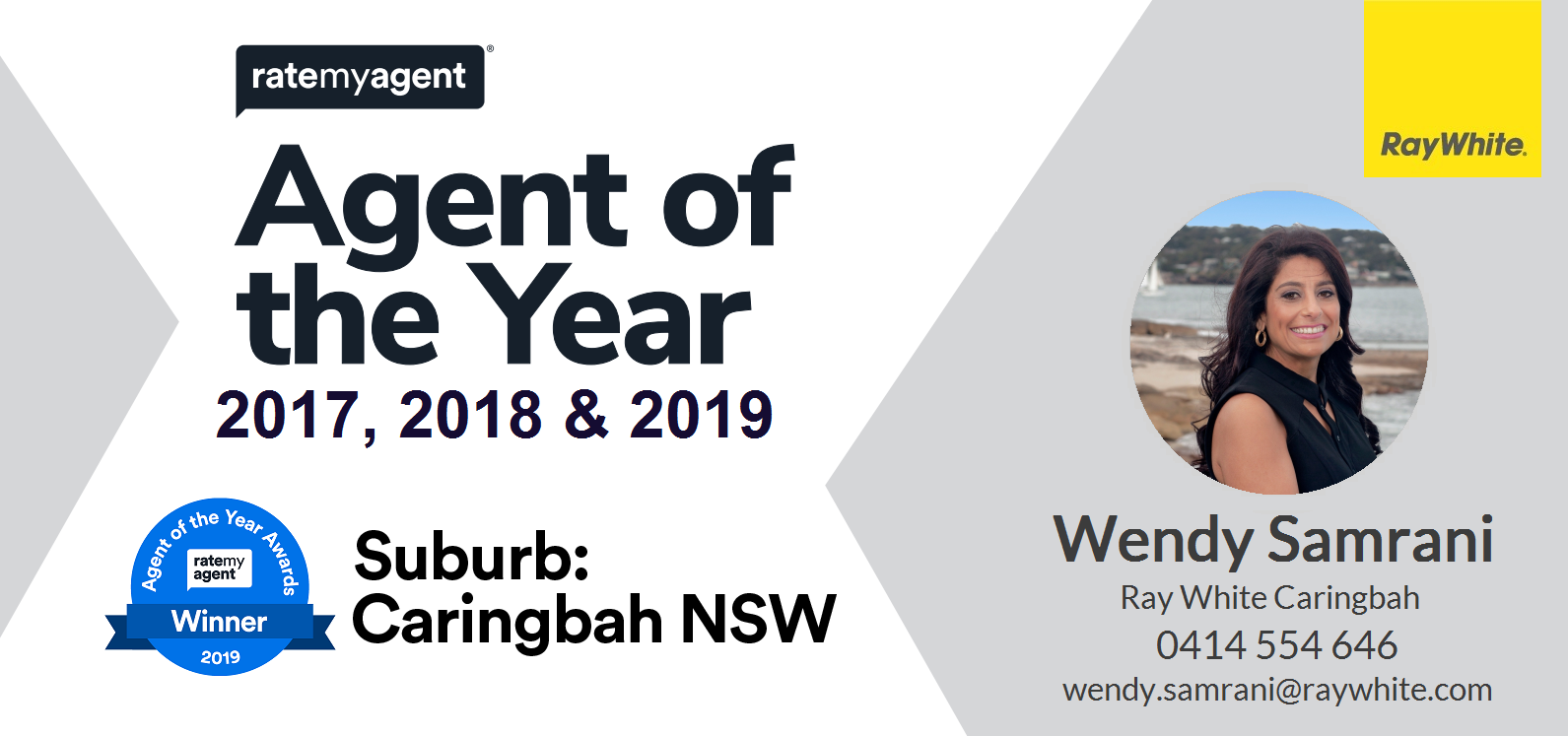 Wendy Samrani has won the Agent of the year in Caringbah at the RateMyAgent 2019 Agent of the Year Awards for the third year in a row. The awards, which are the largest real estate awards in Australia, recognise those agents and agencies that have ranked the highest based on customer reviews and feedback.